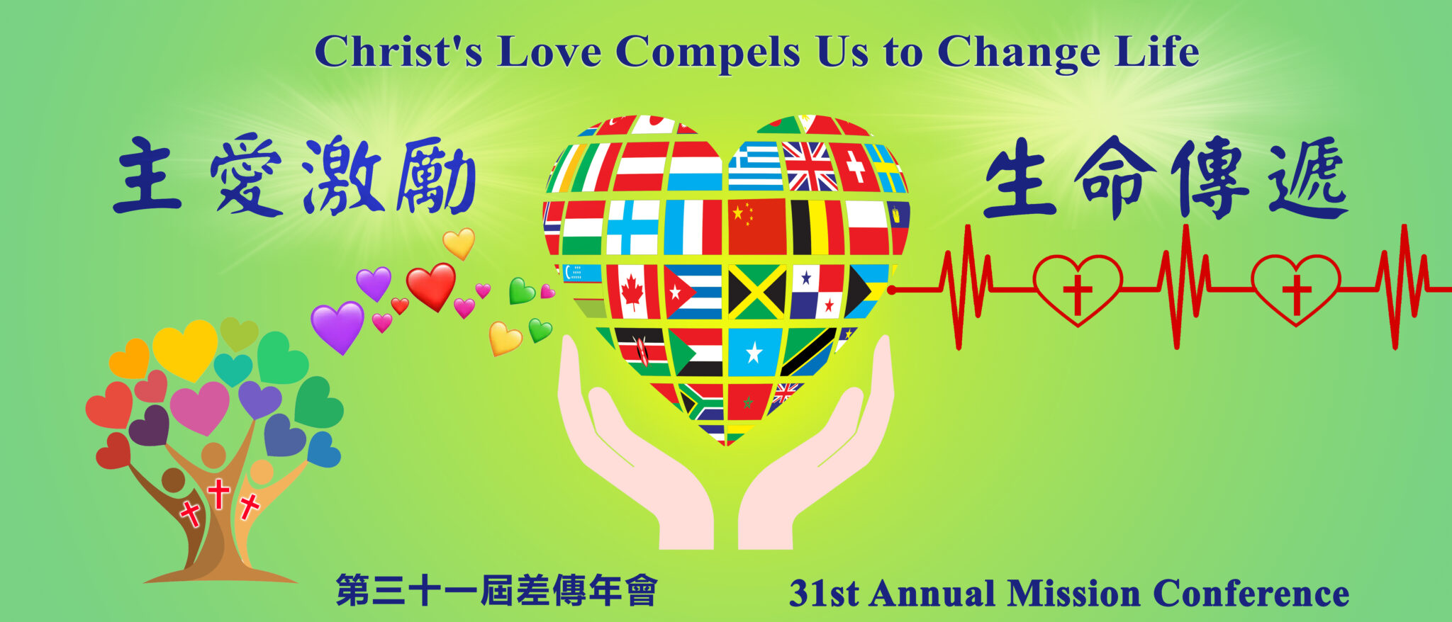 - 感謝上帝祝福我們教會的第三十一屆差傳年會,差派宣教士們來幫助我們︰蔡婉玲宣教士(基督豐榮團契);馮國謙牧師(華人福音普傳會); 李祖苑牧師(中華福音使命團);王欽慈牧師(華人福音普傳會)。求主的愛激勵我們熱愛靈魂的心,藉著禱告、奉獻、關懷、宣教 … 等實際行動來積極參與福音的大使命。